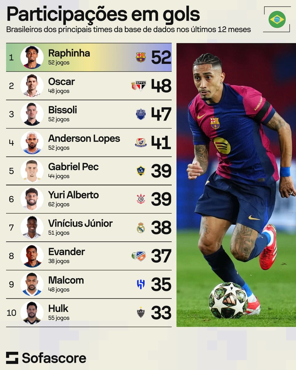 Crias Gabriel Pec e Evander destacam-se entre os brasileiros com mais contribuições para gols nos últimos 12 meses. quinta-feira, 20/03/2025 às 22:24 — Em Últimas notícias