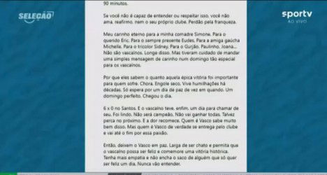 Atualmente comentarista, Fellipe Bastos se emociona ao relembrar a vitória do Vasco contra o Santos; confira. segunda-feira, 18/08/2025 às 13:43 — Em Últimas notícias