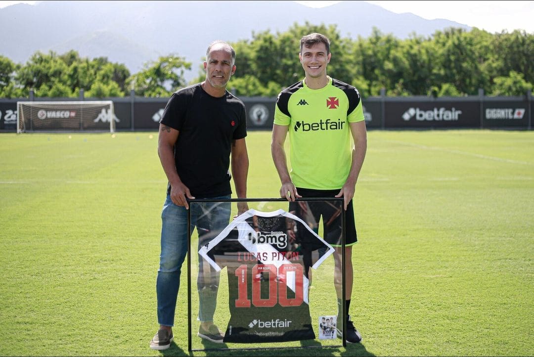 Felipe Maestro entrega camisa 100 do Vasco a Lucas Piton em comemoração aos seus 100 jogos pelo clube sexta-feira, 01/11/2024 às 16:17 — Em Últimas notícias