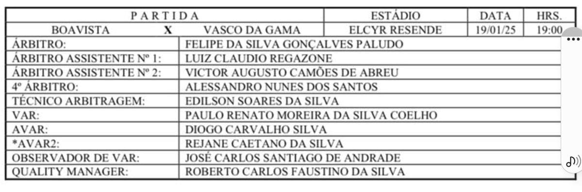 Felipe Silva Gonçalves Paludo será o árbitro do jogo entre Boavista e Vasco, enquanto Paulo Renato Moreira da Silva Coelho atuará como árbitro de vídeo (VAR). quinta-feira, 16/01/2025 às 19:49 — Em Últimas notícias
