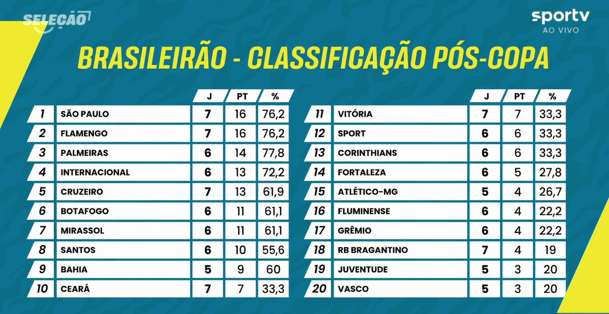 Vasco registra a menor pontuação no Brasileiro após a Copa do Mundo de Clubes; confira. segunda-feira, 11/08/2025 às 14:24 — Em Últimas notícias