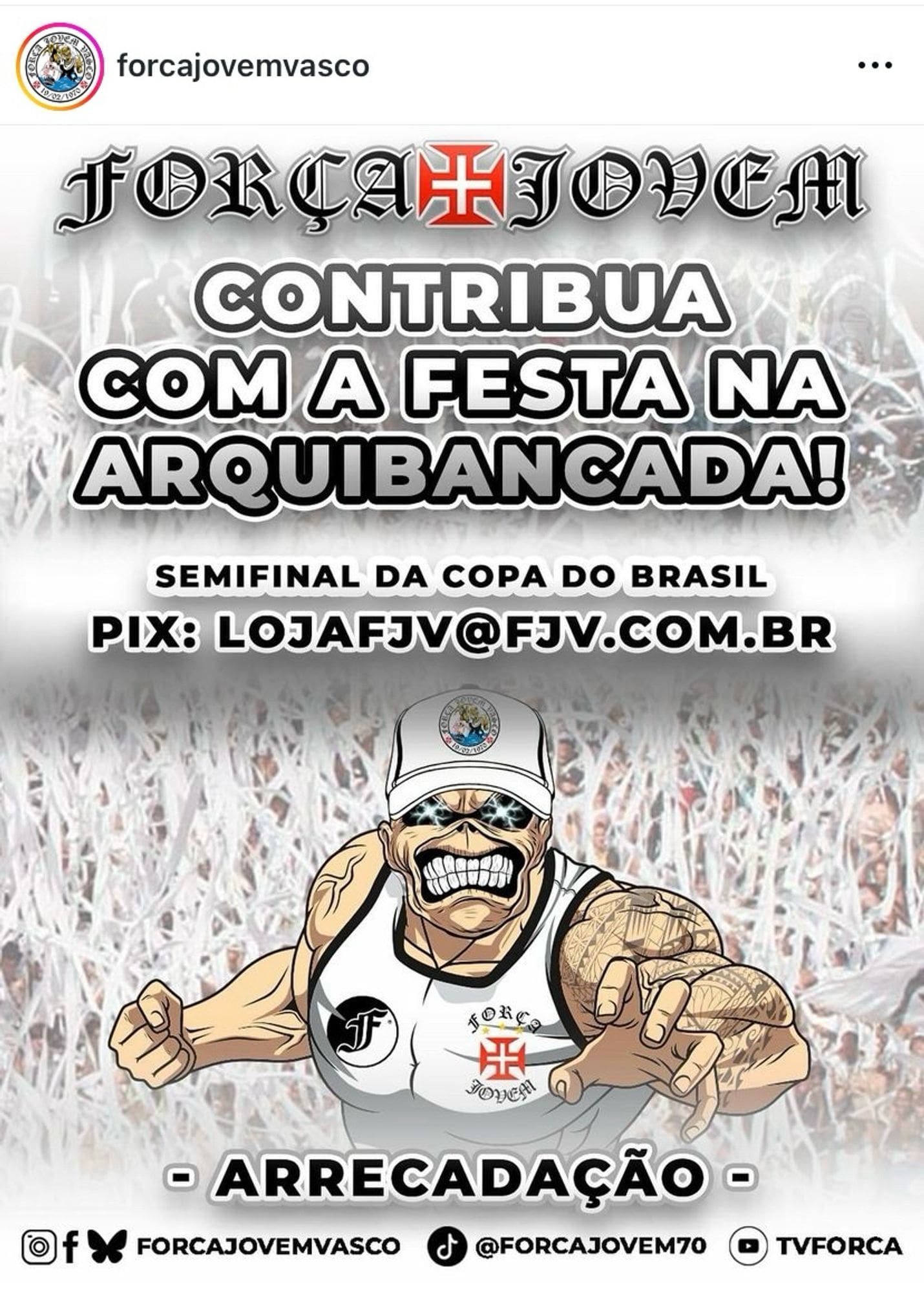Força Jovem organiza celebração para Vasco x Atlético-MG, partida de volta das semifinais da Copa do Brasil domingo, 06/10/2024 às 19:41 — Em Últimas notícias