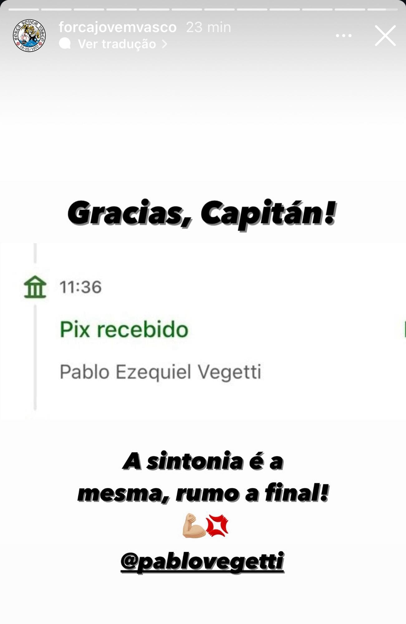 Vegetti realizou um PIX para apoiar a festa que a Força Jovem organiza para o jogo entre Vasco e Atlético-MG. terça-feira, 08/10/2024 às 20:59 — Em Últimas notícias