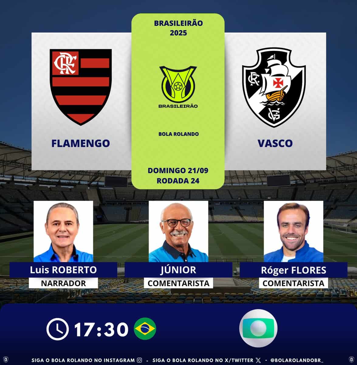 Profissionais que estarão na transmissão de Flamengo x Vasco pela TV domingo, 21/09/2025 às 12:33 — Em Últimas notícias