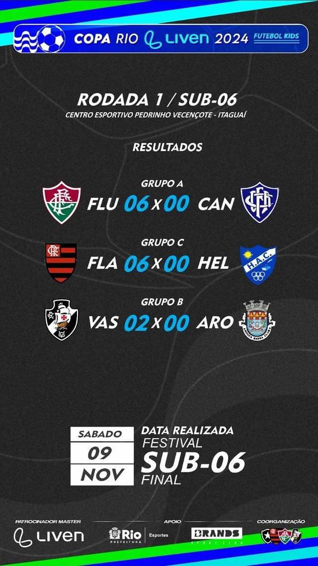 Vasco enfrenta o Fluminense nas semifinais da Taça Rio para as categorias Sub-11 e Sub-12, neste sábado, em Xerém. sábado, 09/11/2024 às 11:37 — Em Últimas notícias