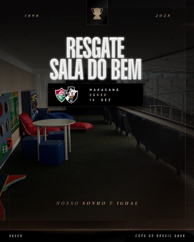 Resgate da Sala do Bem no confronto entre Fluminense e Vasco acontecerá nesta 6ª-feira. quarta-feira, 10/12/2025 às 17:59 — Em Últimas notícias
