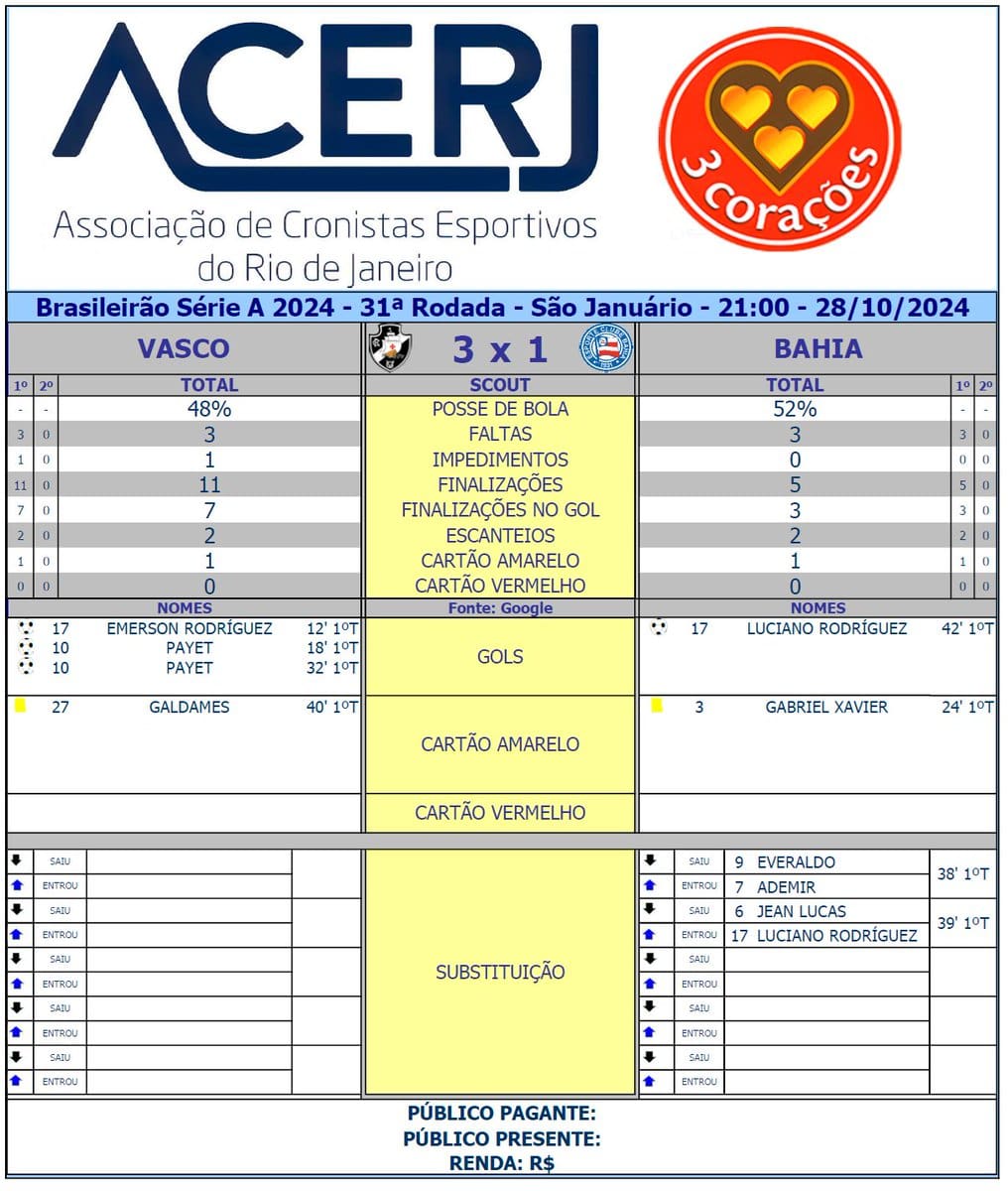 Acompanhe Vasco x Bahia pelo ge ou pela VascoTV. segunda-feira, 28/10/2024 às 20:31 — Em Últimas notícias