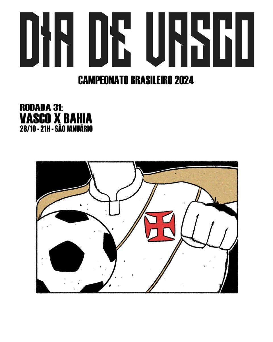 Confira a arte promocional do confronto entre Vasco e Bahia. segunda-feira, 28/10/2024 às 00:03 — Em Últimas notícias