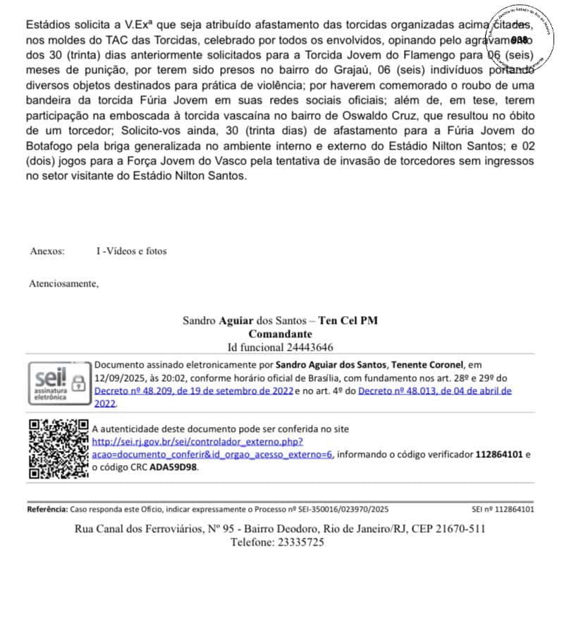 Força Jovem e organizada do Botafogo são analisadas pelo Ministério Público. quarta-feira, 17/09/2025 às 08:43 — Em Últimas notícias