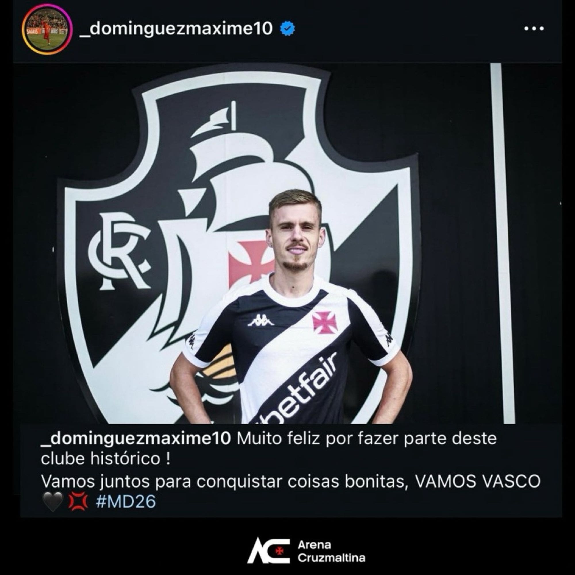 Maxime Dominguez compartilha imagem vestindo a camisa do Vasco em seu Instagram; confira segunda-feira, 09/09/2024 às 17:55 — Em Últimas notícias