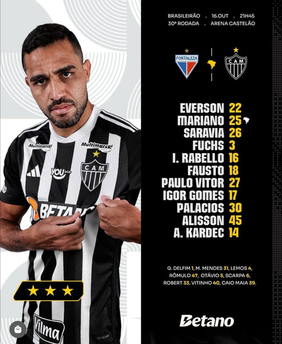 Adversário do Vasco na Copa do Brasil, Atlético-MG utiliza praticamente time reserva nesta quarta-feira contra o Fortaleza quarta-feira, 16/10/2024 às 21:01 — Em Últimas notícias