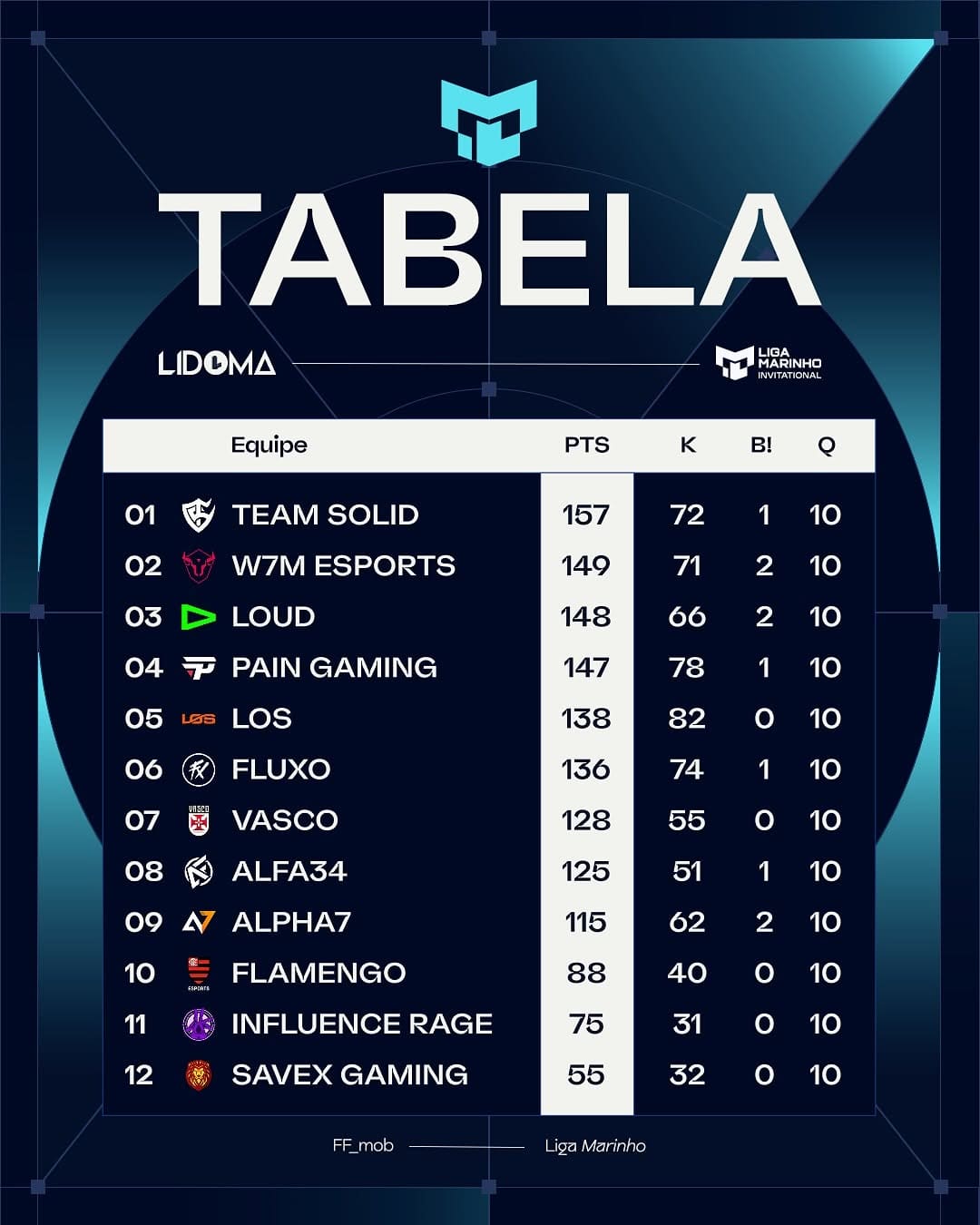 Vasco Conquista 7ª Posição no 2º Dia da Liga Marinho Invitational de Free Fire sábado, 12/04/2025 às 07:15 — Em Últimas notícias