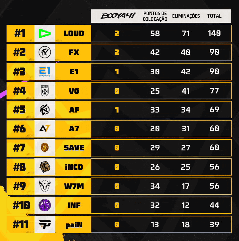 E-Sports: Vasco encerra o 1º dia da Liga NFA Favela de Free Fire na 10ª colocação sábado, 19/04/2025 às 07:07 — Em E-Sports