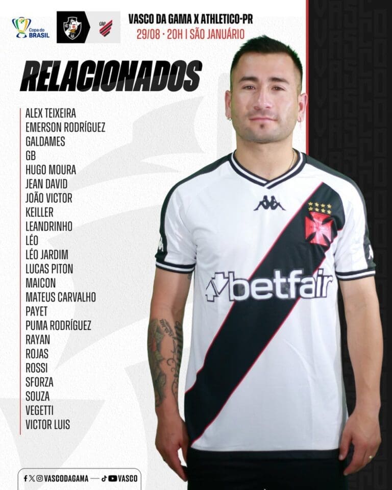 Vasco divulga escalação contra Athletico-PR com Rayan substituindo Adson. Confira! quinta-feira, 29/08/2024 às 19:03 — Em Últimas notícias