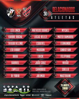 Athletico-PR convoca elenco para duelo decisivo contra o Vasco na Copa do Brasil quarta-feira, 28/08/2024 às 19:15 — Em Últimas notícias