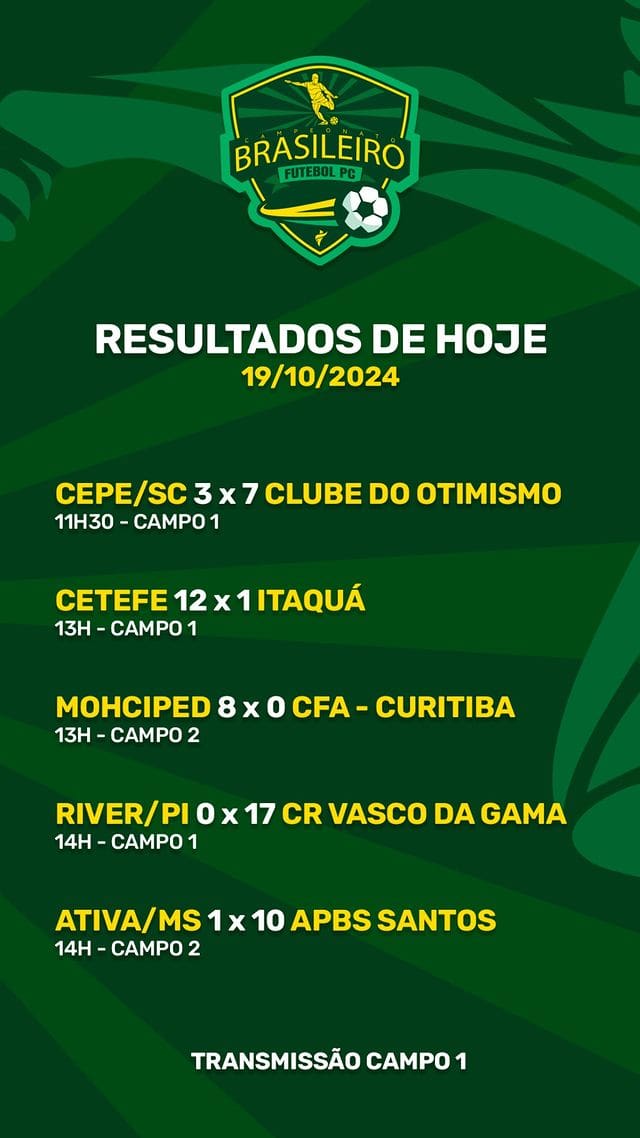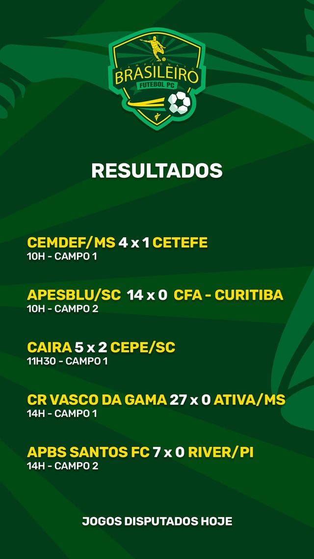 Futebol Paralímpico: O Vasco derrota o Santos por 5 a 0 e avança para a semifinal do Brasileiro nesta segunda-feira às 15h30. domingo, 20/10/2024 às 19:49 — Em Últimas notícias