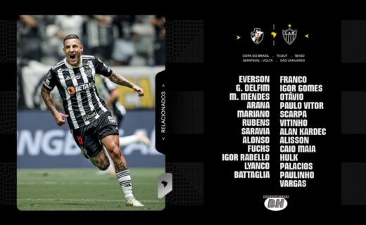 Atlético-MG anuncia lista de convocados para a partida contra o Vasco sexta-feira, 18/10/2024 às 19:15 — Em Últimas notícias