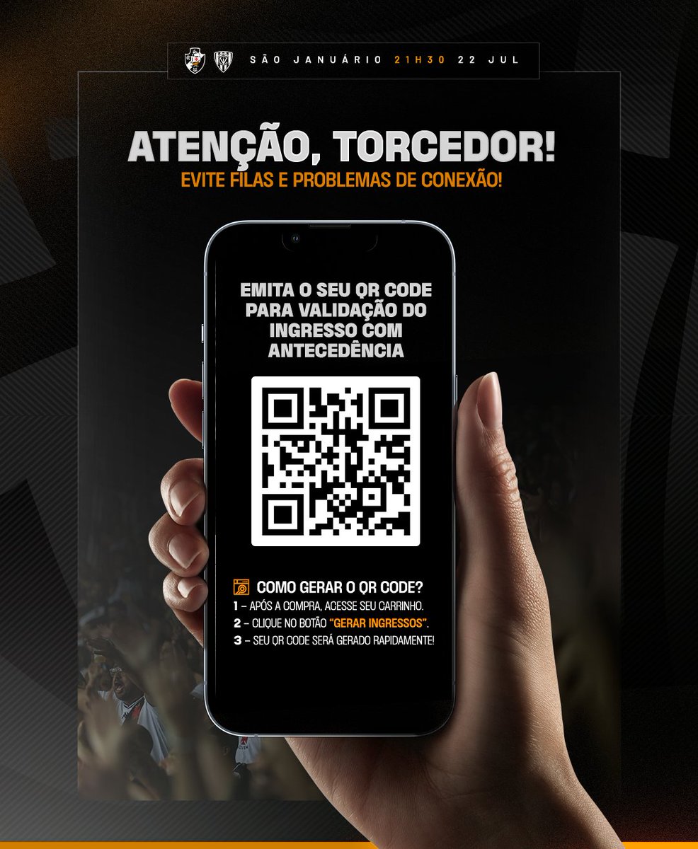 Vasco solicita aos torcedores que gerem o QR Code de seus bilhetes para a partida desta 3ª-feira. segunda-feira, 21/07/2025 às 13:52 — Em Últimas notícias