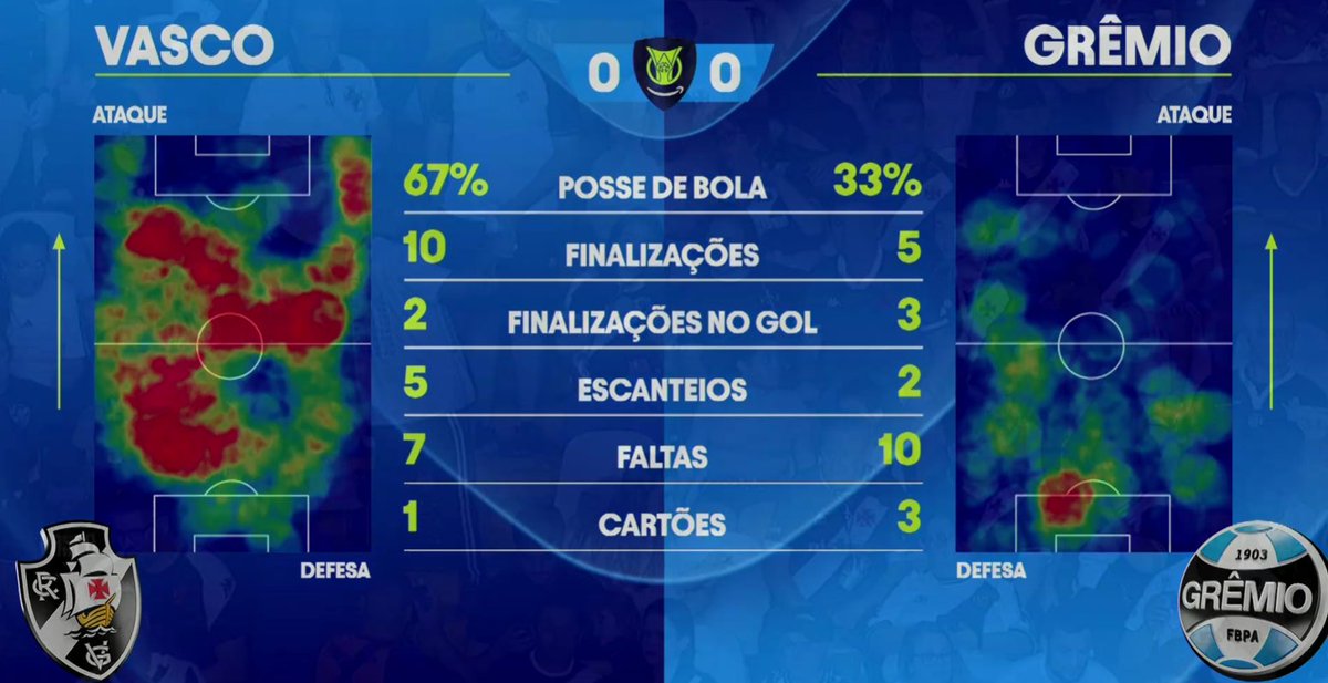 Confira os mapas térmicos de Vasco e Grêmio na primeira etapa. sábado, 19/07/2025 às 18:40 — Em Últimas notícias