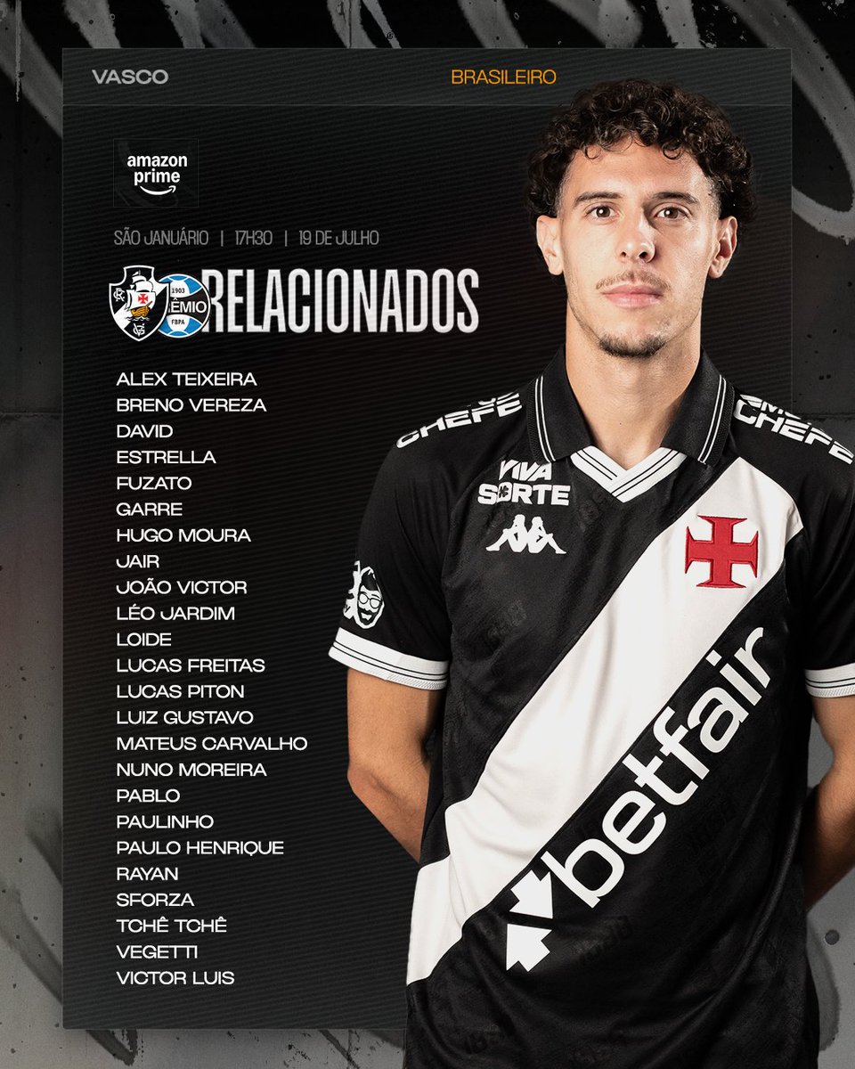 Vasco anuncia a lista de convocados para a partida frente ao Grêmio. sábado, 19/07/2025 às 15:18 — Em Últimas notícias