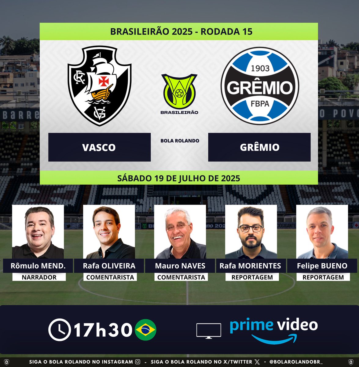 Conheça os profissionais encarregados da transmissão de Vasco x Grêmio. sábado, 19/07/2025 às 10:42 — Em Últimas notícias
