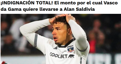 Mídia chilena destaca ‘indignação’ no Colo-Colo diante da oferta do Vasco por Alan Saldivia: menos de US$ 1 milhão. sexta-feira, 18/07/2025 às 04:52 — Em Últimas notícias