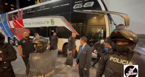 Veja o instante em que a segurança solicita à equipe do canal A Hora do Vasco que desocupe a área do hotel em Quito. quarta-feira, 16/07/2025 às 02:35 — Em Últimas notícias