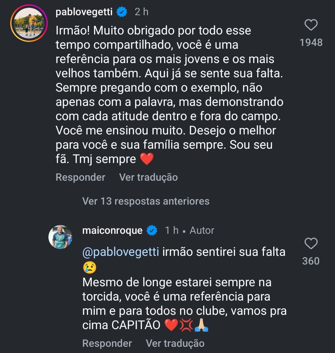 Léo Jardim e Vegetti mandaram mensagens de despedida ao zagueiro Maicon; veja abaixo. quinta-feira, 09/01/2025 às 15:03 — Em Últimas notícias