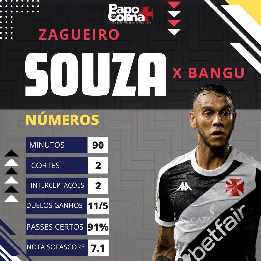 Confira os dados de Souza na partida contra o Bangu; atleta desempenhou a função de zagueiro. sexta-feira, 17/01/2025 às 13:21 — Em Últimas notícias
