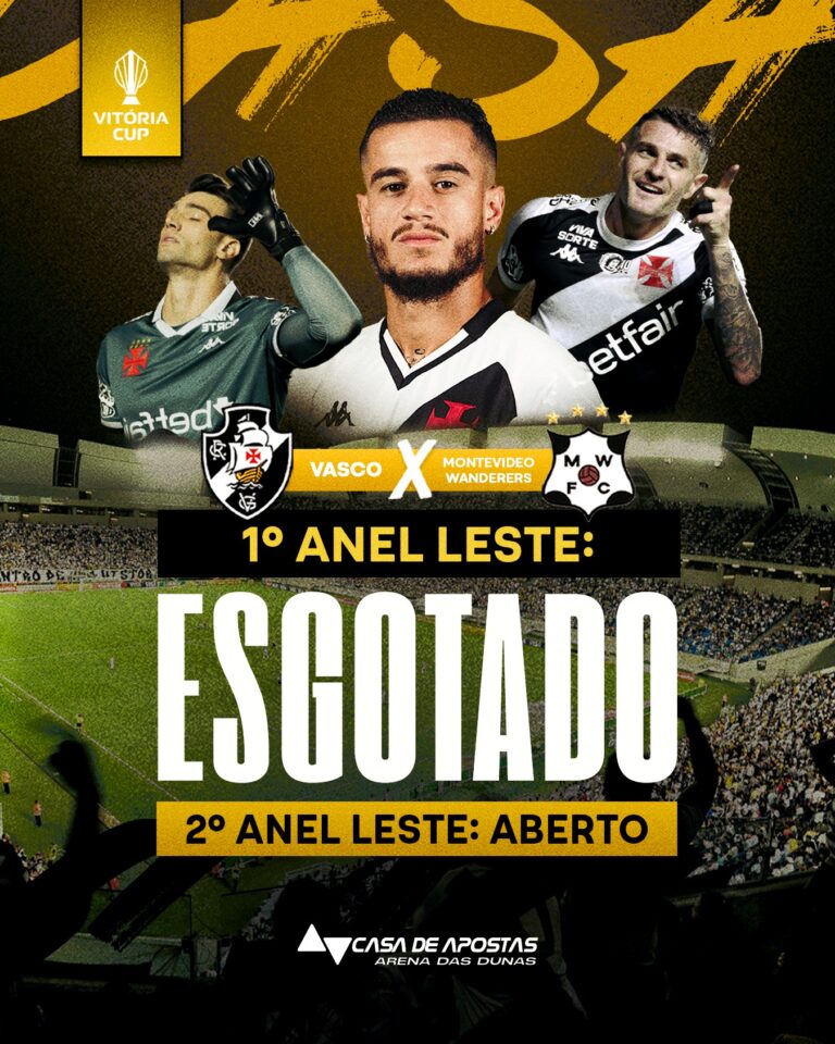 Ingressos para o setor 1º Anel Leste da Arena das Dunas no jogo Vasco x Wanderes já estão completamente vendidos. sexta-feira, 27/06/2025 às 20:24 — Em Últimas notícias