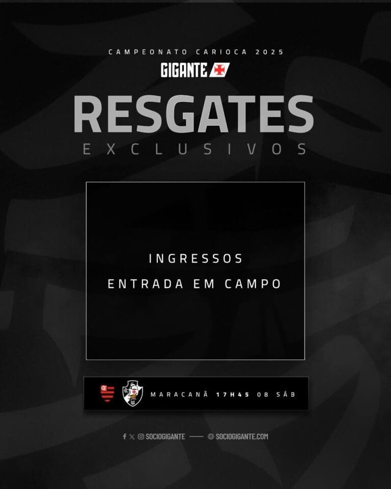 Sócios do Vasco poderão realizar resgates para a partida contra o Flamengo a partir das 10h desta sexta-feira. quinta-feira, 06/03/2025 às 21:56 — Em Últimas notícias
