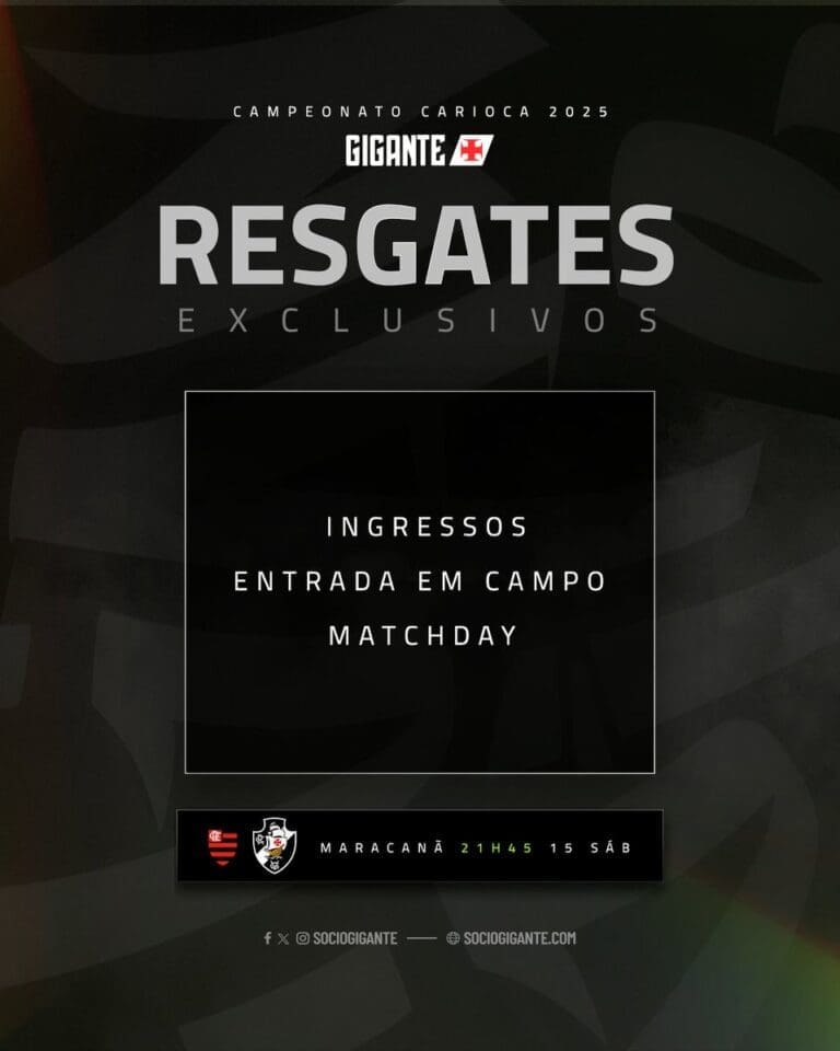 Sócios do Vasco poderão fazer resgates para a partida contra o Flamengo a partir das 17h desta quinta-feira. quinta-feira, 13/02/2025 às 13:37 — Em Últimas notícias