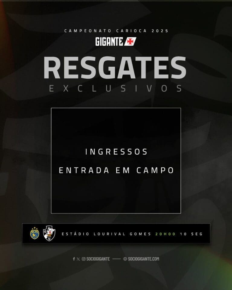 Informações sobre ingressos para Sampaio Corrêa x Vasco quarta-feira, 05/02/2025 às 13:57 — Em Últimas notícias