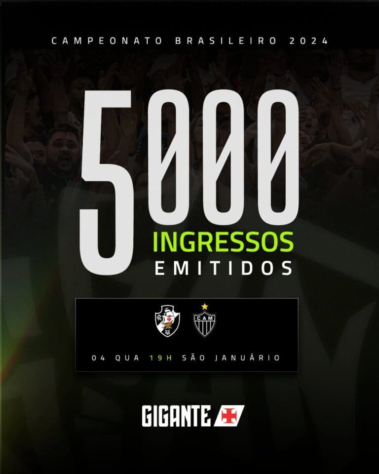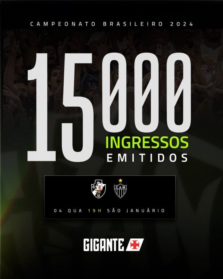 15 mil ingressos já foram vendidos para o jogo entre Vasco e Atlético-MG. sexta-feira, 29/11/2024 às 20:26 — Em Últimas notícias