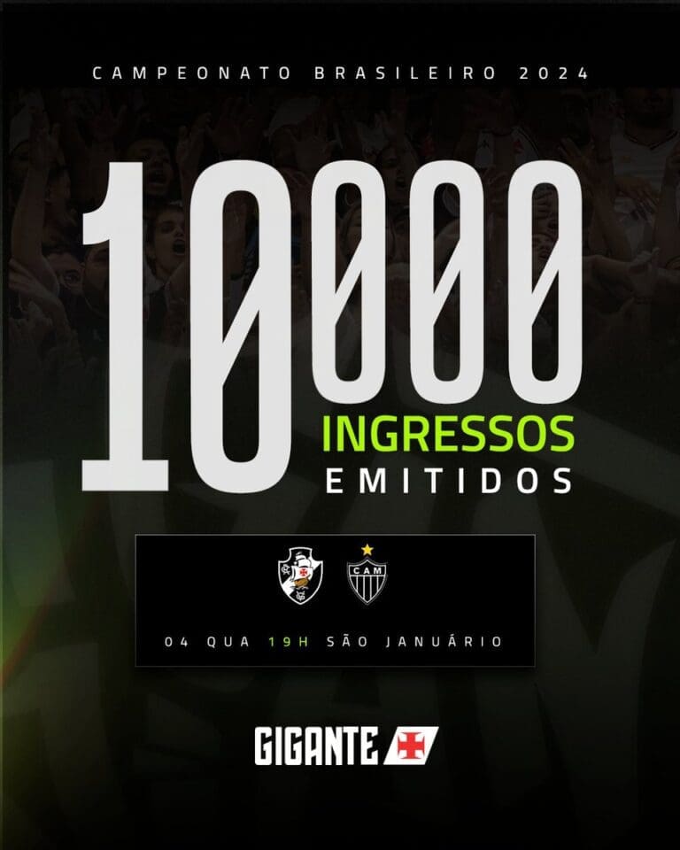 Já foram vendidos 10 mil ingressos para o confronto entre Vasco e Atlético-MG. sexta-feira, 29/11/2024 às 13:38 — Em Últimas notícias