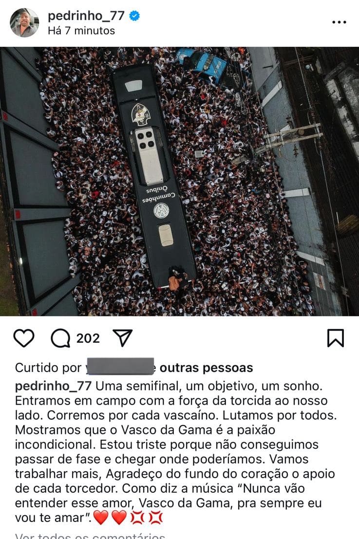 Pedrinho compartilha recado sobre a semifinal da Copa do Brasil, mas exclui após reações negativas dos torcedores. domingo, 20/10/2024 às 17:17 — Em Últimas notícias
