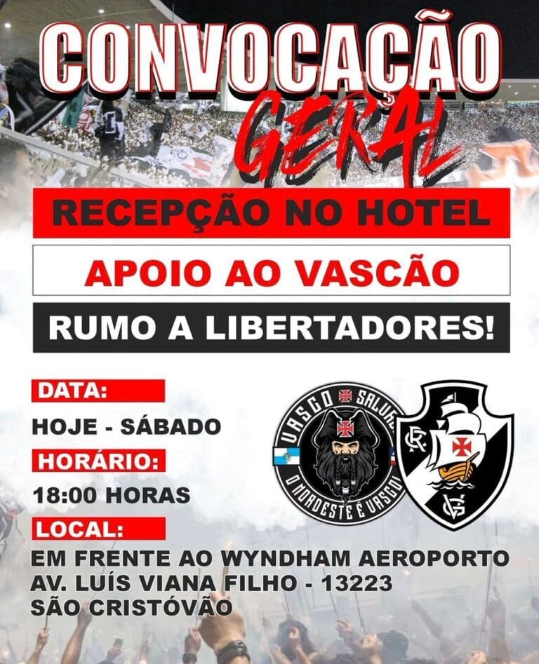A torcida do Vasco está ansiosa para receber seu time com muita empolgação e entusiasmo em Salvador. Vamos apoiar e incentivar o Gigante da Colina rumo à vitória!