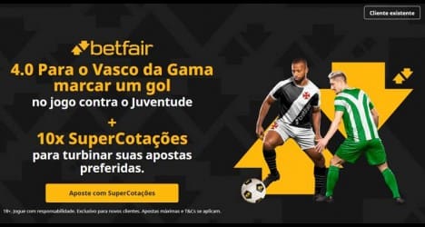 Betfair apresenta promoção para novos clientes com odd de 4.0 para o Vasco marcar contra o Juventude; confira quinta-feira, 03/10/2024 às 14:01 — Em Últimas notícias