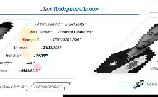 Vasco firma novo contrato com Jair até 2026, com chance de prorrogação por mais um ano. quinta-feira, 04/12/2025 às 17:04 — Em Últimas notícias