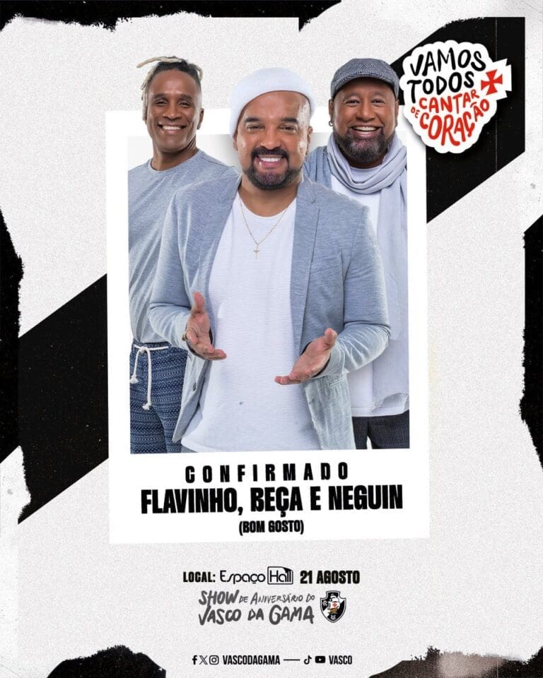 Vasco da Gama @VascodaGama É bom ter aquela selecinha no repertório, né?! 😉 Estilo Top (representado por Flavinho, Beça e Neguin), Andrezinho, Juninho e Magal estão confirmados para o espetáculo de aniversário de 126 anos do #VascoDaGama! Vamos Todos com Tudo no Coração ❤💢 💻 https://bit.ly/3yElUmY 🗓 21 de agosto 🕣 20h30 📍 Espaço Hall […]