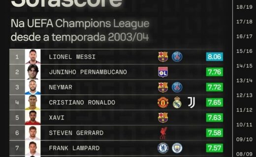 Juninho Pernambucano é o 2º jogador com a maior classificação Sofascore na história da Champions League sábado, 07/09/2024 às 04:25 — Em Últimas notícias