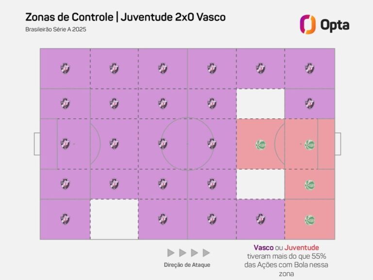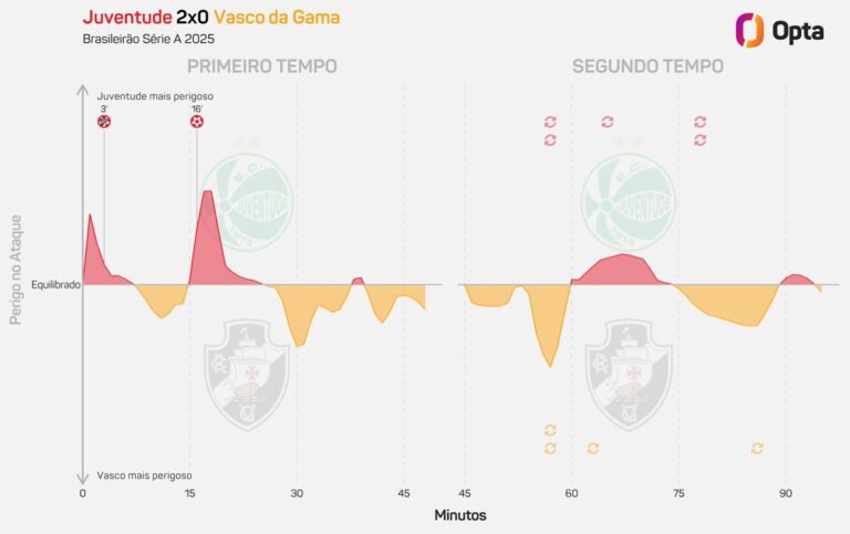 Juventude contabilizou apenas 24% de posse de bola na partida contra o Vasco. quarta-feira, 20/08/2025 às 23:49 — Em Últimas notícias