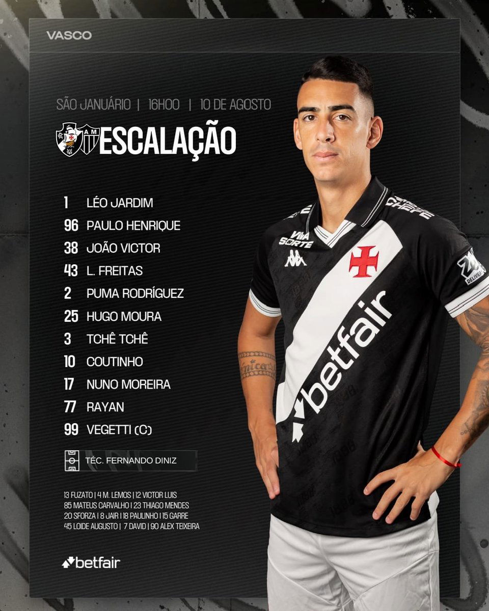 Verifique a formação do Vasco para o confronto contra o Atlético-MG; Puma Rodríguez será o titular na lateral esquerda. domingo, 10/08/2025 às 15:04 — Em Últimas notícias