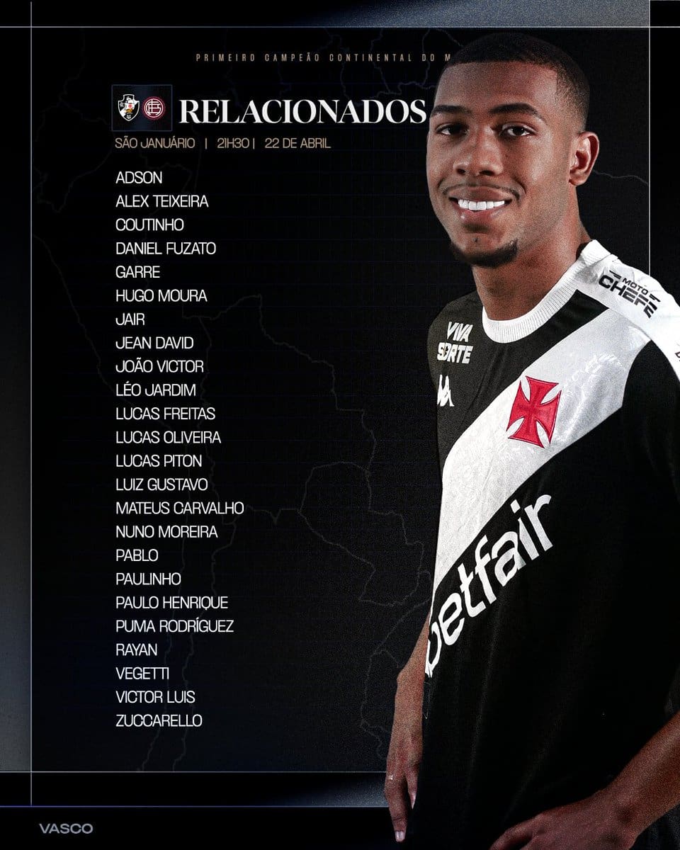 Veja os relacionados do Vasco para a partida contra o Lanús; Loide Augusto apresentará dor muscular e está fora. terça-feira, 22/04/2025 às 18:51 — Em Últimas notícias