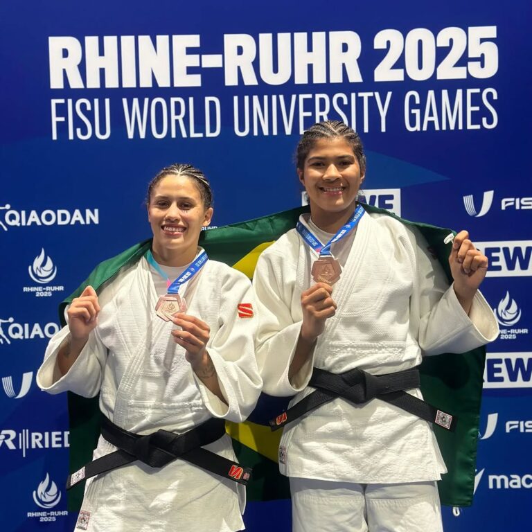 🏅 Judô em alta! Luana Carvalho e Beatriz Comanche brilham e conquistam a medalha de bronze em equipes na Universíade da Alemanha! 🇧🇷💪 Parabéns, meninas! #Judô #Universíade #Brasil