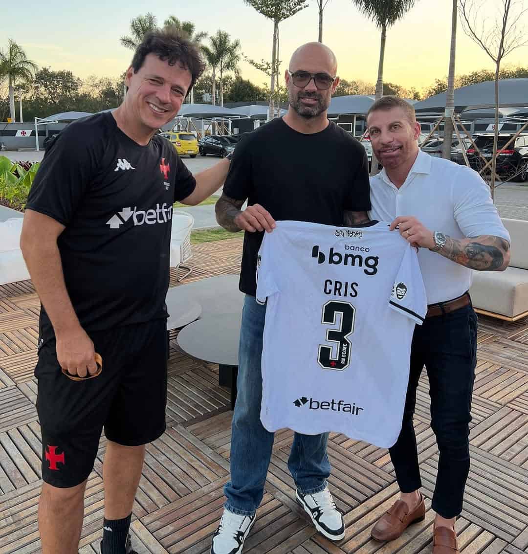 Ex-zagueiro Cris visita o CT Moacyr Barbosa e posa com Fernando Diniz e Pedrinho após ganhar camisa do Vasco domingo, 07/09/2025 às 09:44 — Em Últimas notícias