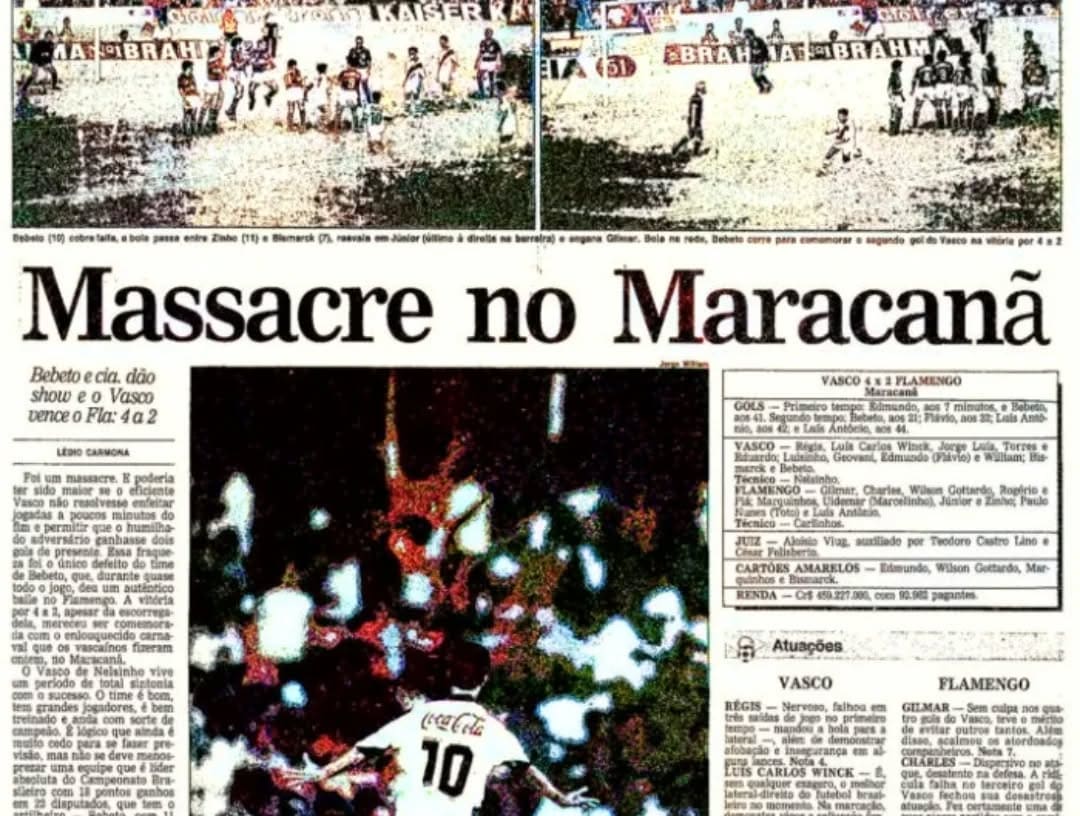 Pelo Campeonato Brasileiro de 1992, o Vasco derrotou o Flamengo, conhecido como Flamengo, por 4 a 2 no Maracanã. Os gols da partida foram marcados por Bebeto, Edmundo e Flávio. Vamos relembrar! sábado, 15/02/2025 às 17:27 — Em Últimas notícias