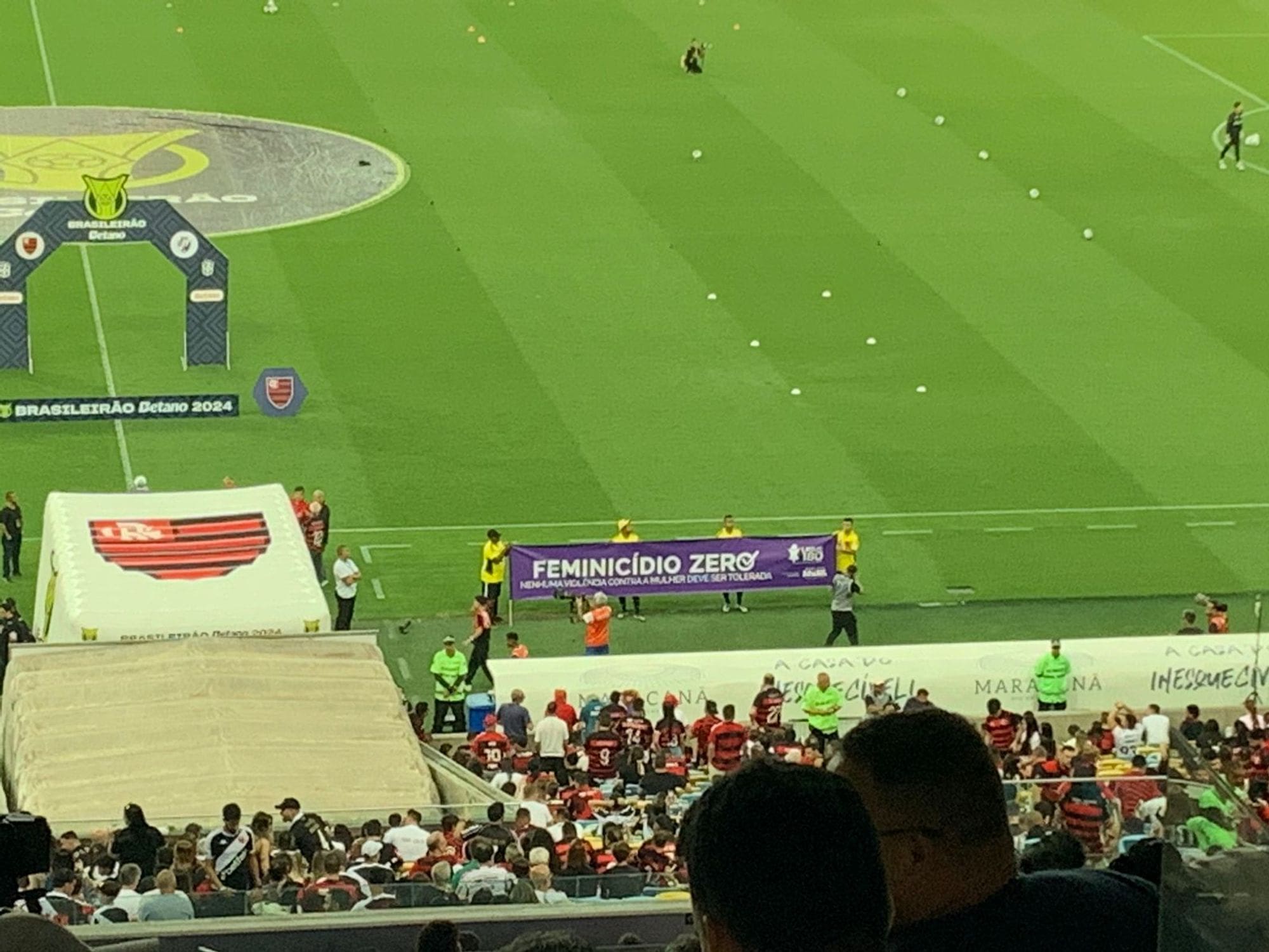 Faixa ‘Feminicídio Zero’ é ampliada no gramado do Maracanã antes da partida Urubu x Vasco domingo, 15/09/2024 às 17:57 — Em Últimas notícias