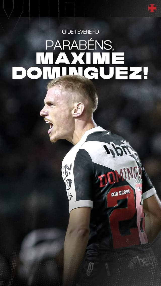 Vasco celebra o aniversário de Maxime Dominguez, que recebe os parabéns hoje. sábado, 01/02/2025 às 14:12 — Em Últimas notícias