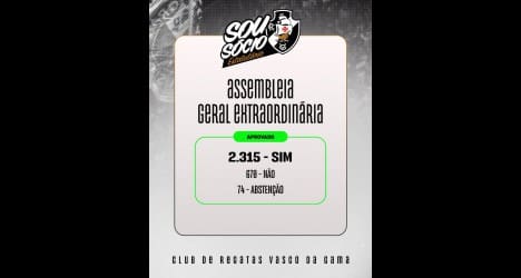 AGE aprova formação da SPE para as obras de reforma de São Januário com 2.315 votos a 670. sexta-feira, 23/05/2025 às 20:50 — Em Últimas notícias